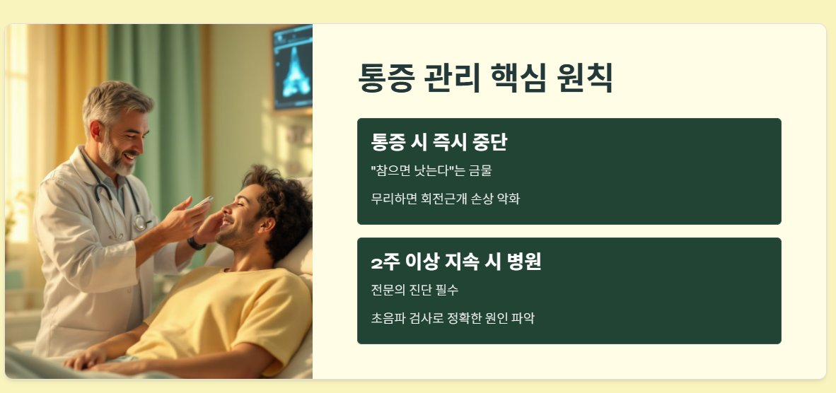 “참으면 낫는다”는 생각은 오히려 회전근개 손상을 키웁니다.