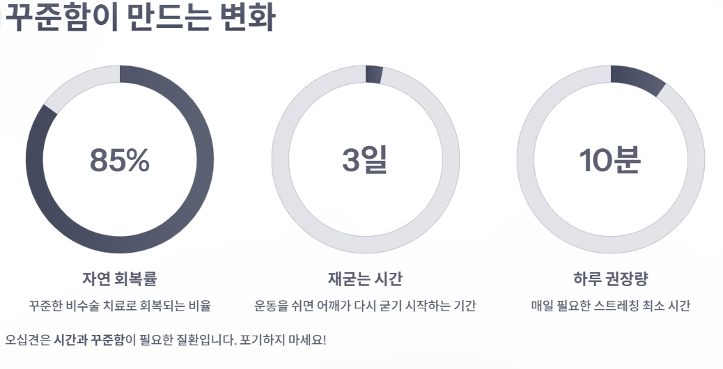 포기하지 말고 하루 10분씩 어깨를 움직이는 습관을 들이세요.