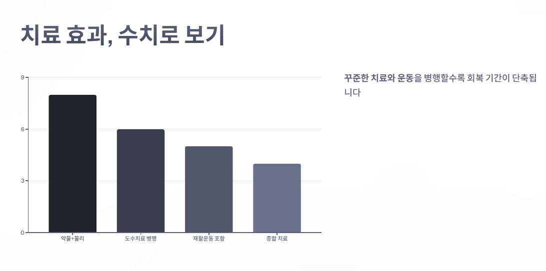 꾸준한 물리치료와 운동으로 6개월~1년 사이에 자연 회복되는 경우가 많아요.