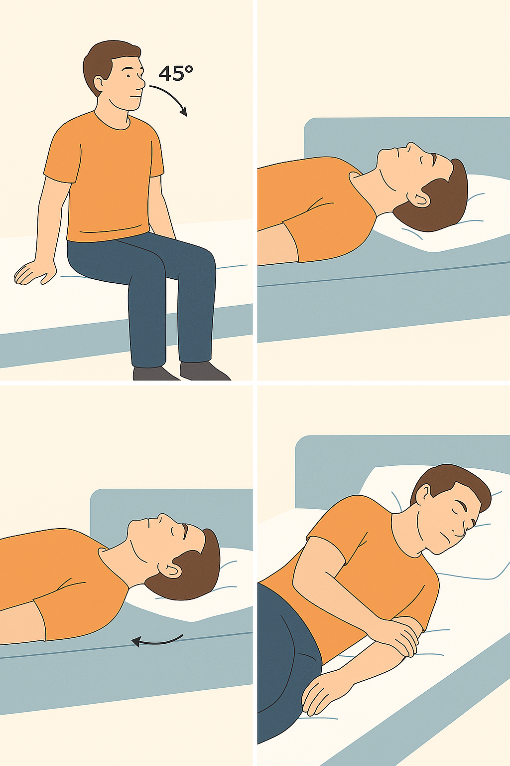 병원에서 하는 Epley Maneuver(이석 치환술)를 집에서 쉽게 변형한 운동이 아래 두 가지입니다.