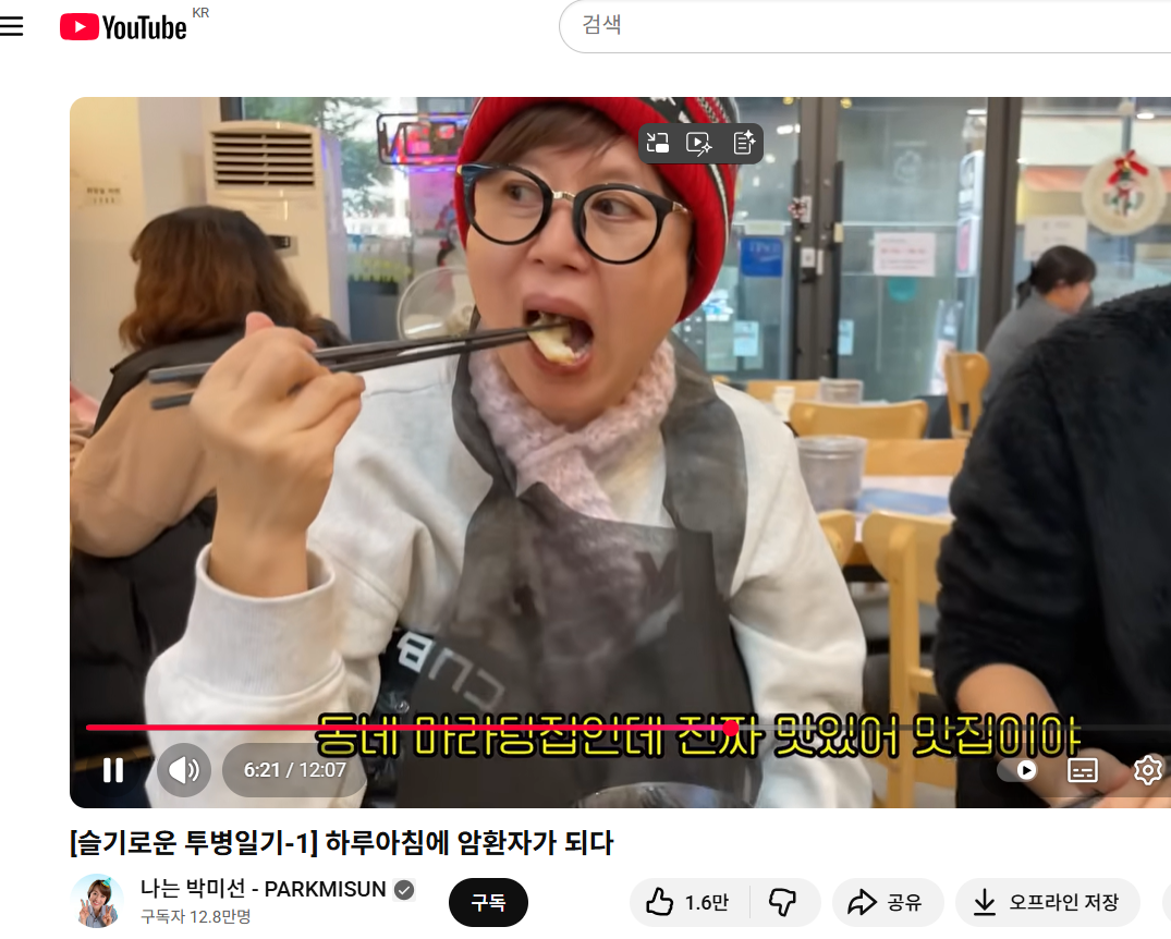 건강검진에서 유방암을 발견한 건 2024년 말. “하루아침에 암 환자가 됐다”는 말이 얼마나 큰 충격이었을지, 그 심정이 영상에서도 고스란히 느껴지더라고요. 하지만 박미선 씨는 당황함 속에서도 바로 치료를 선택했고, 2025년 1월부터 항암을 본격적으로 시작했다고 해요.