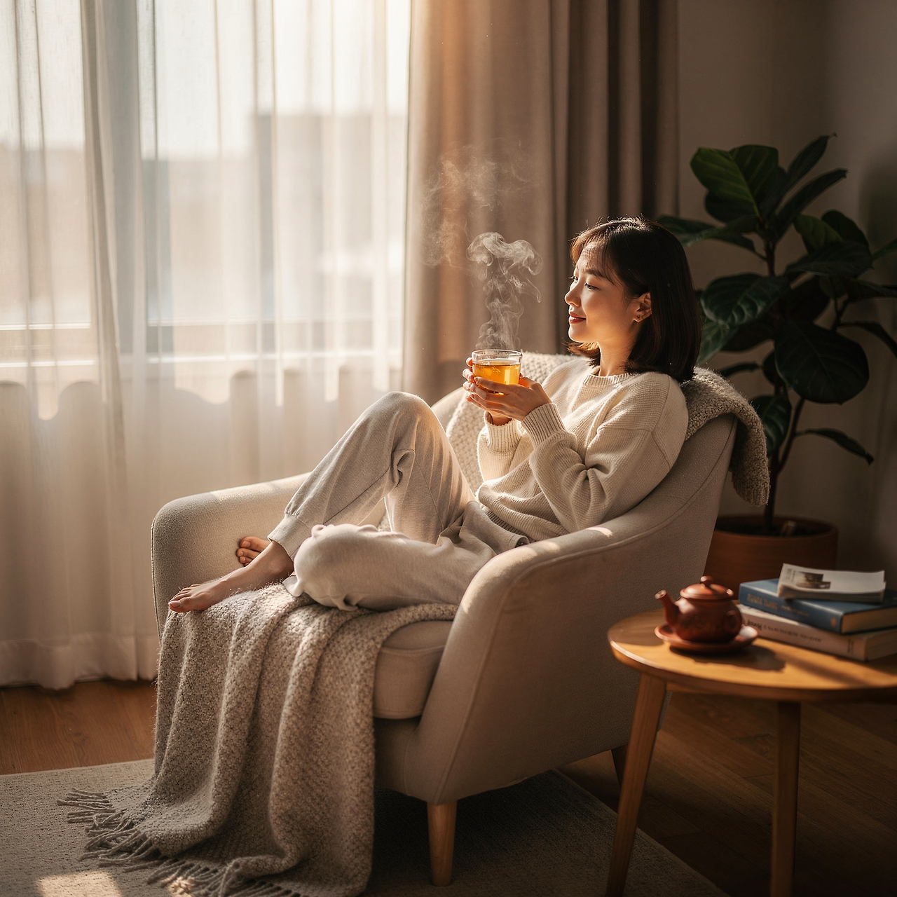 유자 특유의 향 성분과 점액질은 목을 부드럽게 감싸주어 기침, 목 따가움 완화에 도움이 됩니다. 따뜻하게 마실수록 효과를 느끼기 쉽습니다.