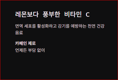 카페인이 없어 저녁 시간에도 부담 없이 마실 수 있으며, 남녀노소 모두 즐기기 좋습니다.