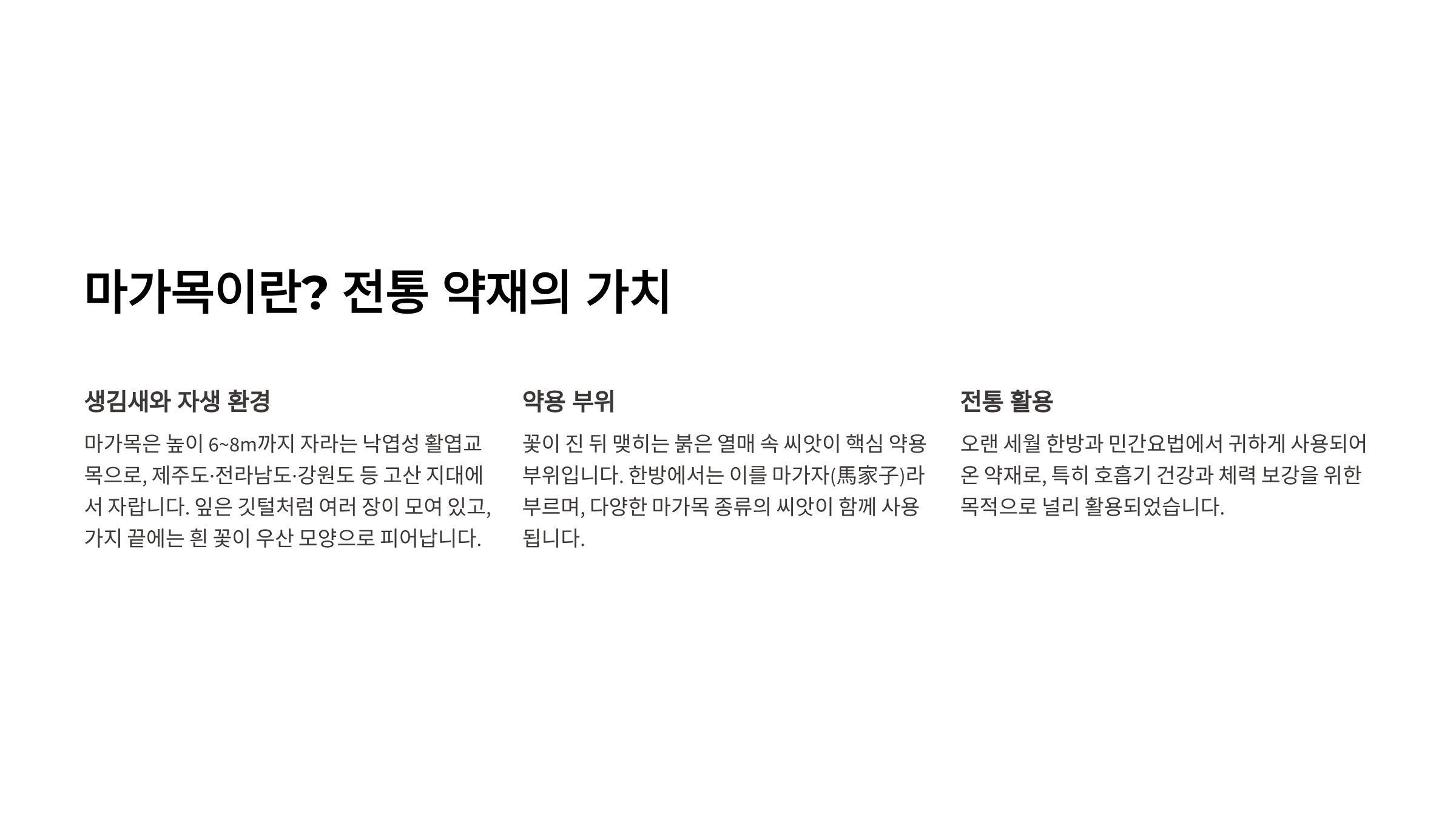 산속 깊은 곳에서 자라 예로부터 귀하게 여겨졌고, 한방과 민간요법에서 오랫동안 활용돼 왔습니다.