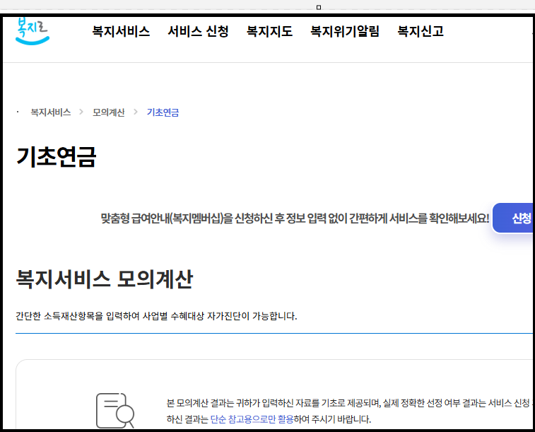 기초연금모의계산 소득기준